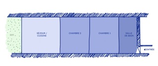 En l’état, l’aménagement d’un logement T3 est compromis. La recherche d’ouvertures et l’apport de lumière dans le logement est l’enjeu principal.