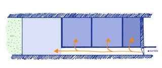 Par sa présence, d’un bout à l’autre du logement, le couloir peut être habité et ainsi participer à la convivialité du logement.