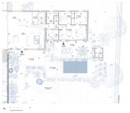 La volonté est donc de cloisonner les deux espaces distincts. Alors même que le nouveau dépôt pourrait être perçu comme un inconvénient, le parti-pris est de placer celui-ci au centre de la parcelle et d’en faire un atout au projet. Agissant comme un écran de protection contre le Mistral, l’entrepôt recentre également le jardin sur lui- même et lui confère plus d’intimité. Une frange végétale plantée d’essences tropicales filtre les vues sur la partie entrepôt et permet une mise à distance esthétique et domestique pour la partie habitation. Aussi, un système de coursives ombragées fait le lien entre les différents corps de bâtiments et permet une uniformisation des façades. Se retournant le long de l’habitation principale, la coursive se prolonge à l’avant de l’extension et définit ainsi des espaces extérieurs couverts.