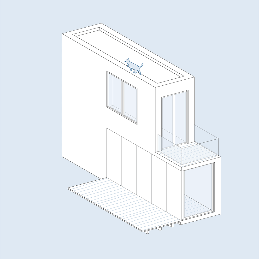 Sur le modèle des « Tiny Houses » américaines ou encore des « Maisons Taupes » japonaises, AMBLA propose un logement de vacances conçu sur le principe « dedans-dehors » où l’extérieur est le prolongement de l’intérieur. Implantée dans la pente, l’habitation est orientée au Sud et offre une vue panoramique sur la Méditerranée et le paysage arboré des alentours.