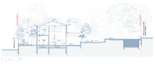 Un autre enjeu de ce projet concerne la gestion des entrants solaires et le confort thermique général du bâtiment d’origine très mal isolé. Un système de pergola avec toiles amovibles vient faire le lien en rez-de-chaussée entre les espaces du séjour et de la cuisine mais aussi entre l’intérieur et l’extérieur. Cette exo structure offre alors la possibilité de profiter de la terrasse exposée plein Sud à tout moment de l’année et de fait, de prolonger les espaces de vie vers le jardin.